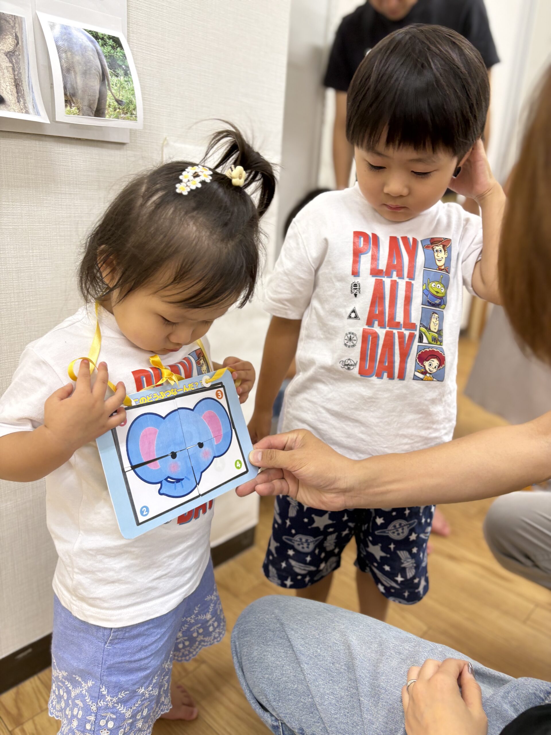 何の動物さんかな?と考えながらシールを貼り進める子どもたち😆