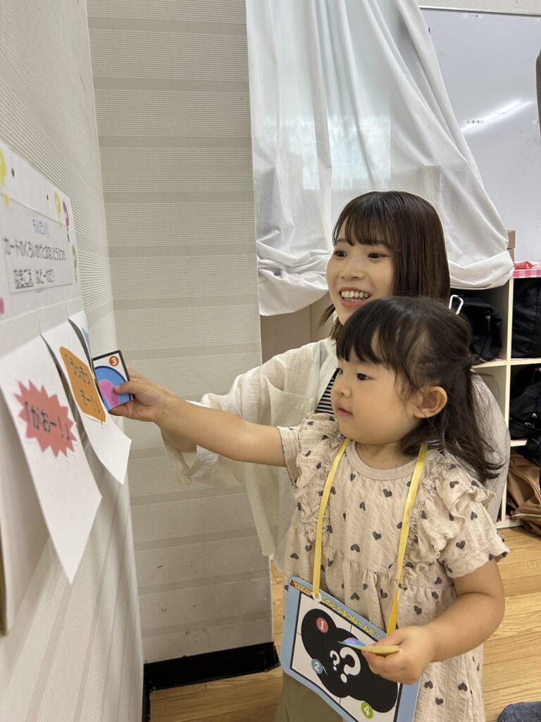 保育園の中に設置した4つのクイズに答えて、台紙に隠れた動物を完成させました✨